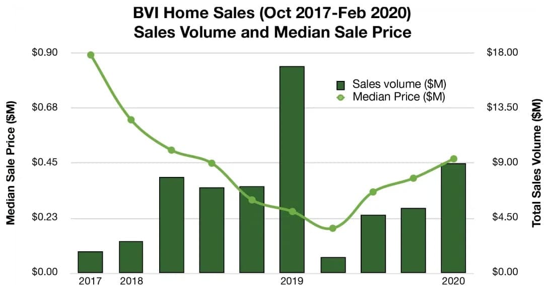 As we approached the start of 2020, the BVI property market was demonstrating clear signs of recovery following the devastating impacts of Hurricane Irma in September 2017. As the post-Irma market with the sale of mainly damaged homes gave way to the sale of undamaged or repaired homes during the course of 2019, the 2019/20 high season was much anticipated to see whether significant interest from overseas investors would return.