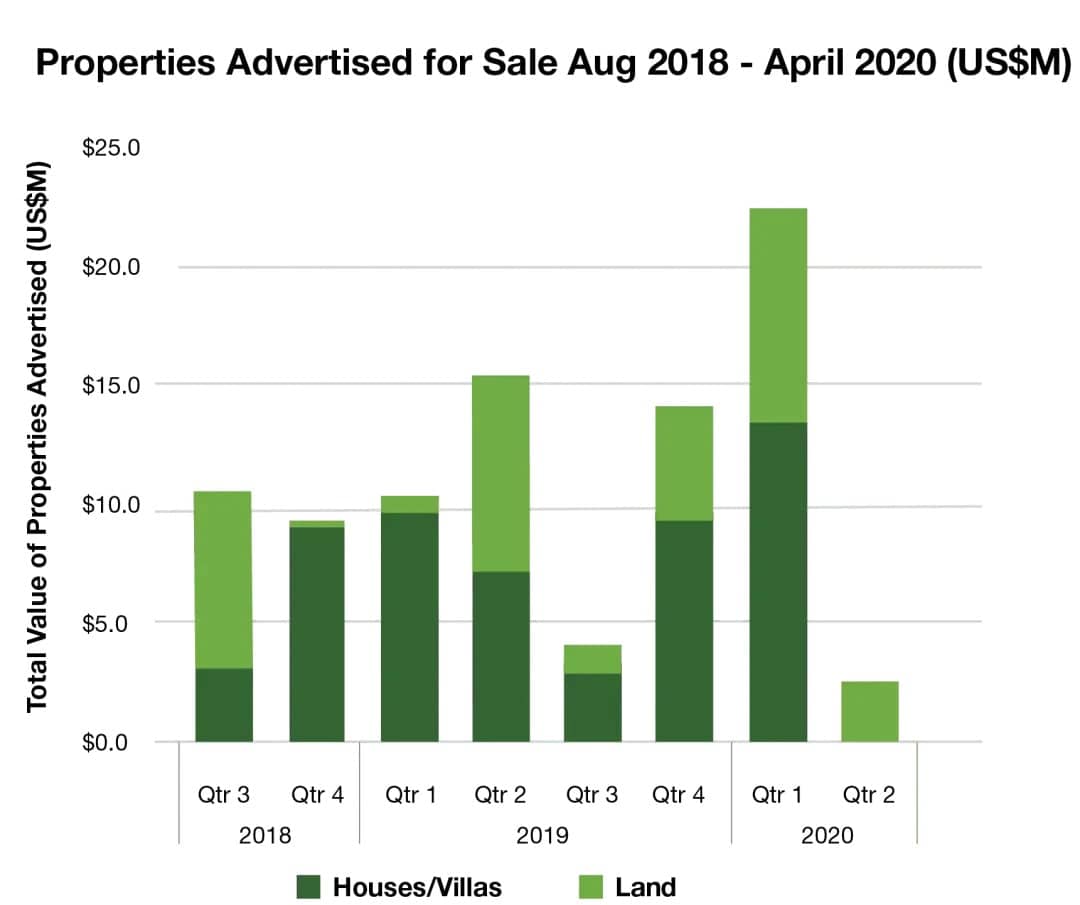 We have tracked these adverts from the BVI Beacon since August 2018 as shown in Chart 2, with a substantial increase in the total volume (US$M) of advertised transactions in Quarter 1 2020. This Q1 transactional volume of villa sales is inflated by three sales, two on Virgin Gorda and one on Tortola, with all three being in excess of $4.0M, an indication that the luxury market was beginning to return to the BVI at the start of 2020.