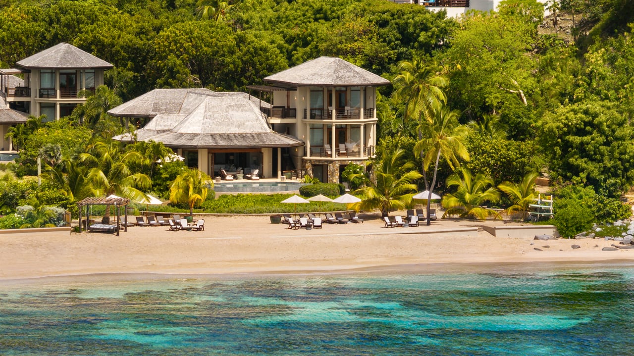 Offered for sale at $7,700,000, ownership includes the beachfront villa, that spans approximately 8,095 square feet of meticulously designed indoor and outdoor space, as well as ownership of one-third of the manager’s house and other amenities. Aquamare offers a private pool, footsteps from the expansive Great Room with its towering, 30-feet vaulted ceilings. Design elements include rich hardwoods, travertine flooring, marble surfaces and elegant lighting. A fully equipped gourmet kitchen; alfresco dining, and more formal indoor dining are catered for. Five elegantly decorated bedrooms, each with gorgeous bathrooms featuring marble tubs, ensure decadent luxury.